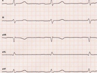 Review the ecg (ekg), present it according to the structure in ecg interpretation and attempt a diagnosis before clicking on the plus symbol to see the answer.